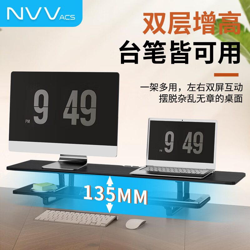 NVV 显示器增高架 双层加长电脑支架增高架 台式电脑显示器支架 笔记本支架桌面底座收纳架置物架NP-8D价格:239.00元!