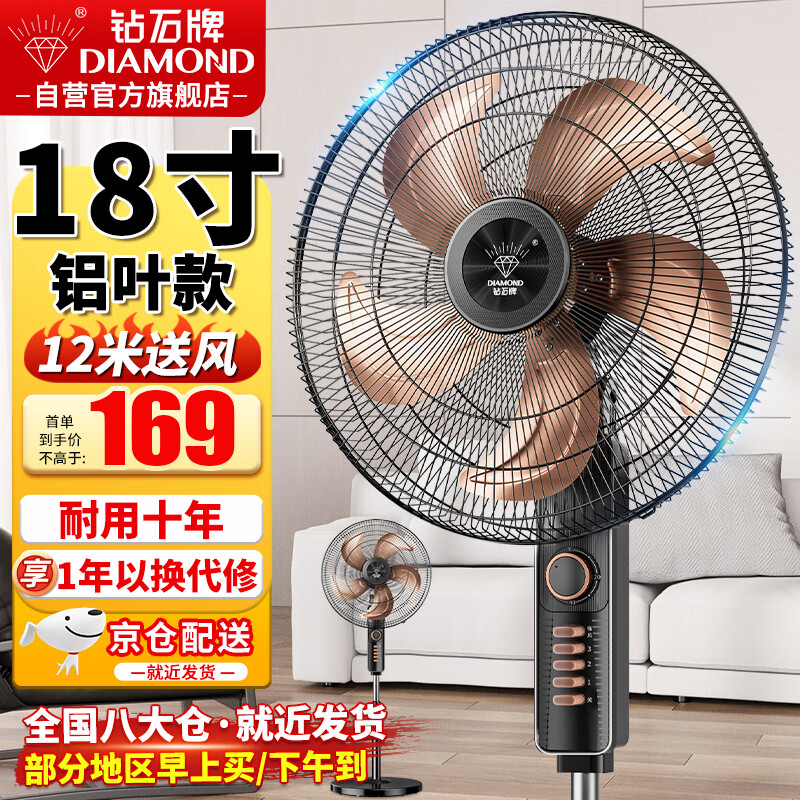 钻石牌(DIAMOND)电风扇家用落地扇办公室立式风扇客厅大风量定时遥控机械摇头风扇 18吋铝叶【机械款】FS-45-1价格:189.00元!