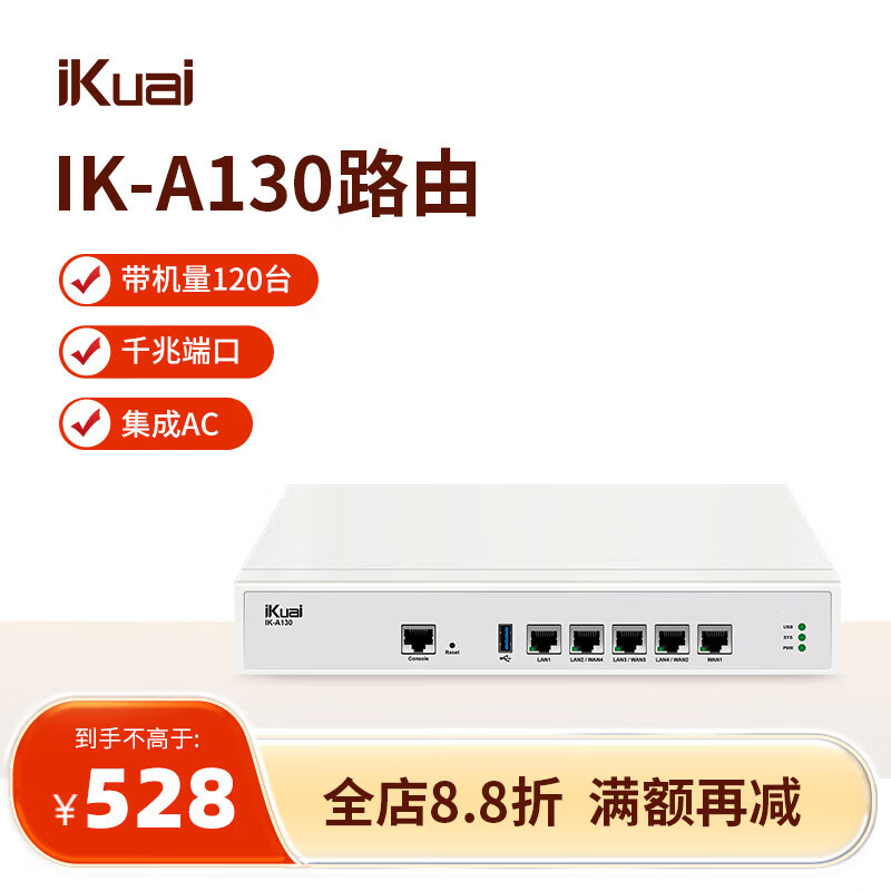 爱快(iKuai)IK-A130 千兆企业级流控有线路由网关 中小企业 多WAN/AC控制器/行为管理/远程办公 带机量120价格:527.00元!