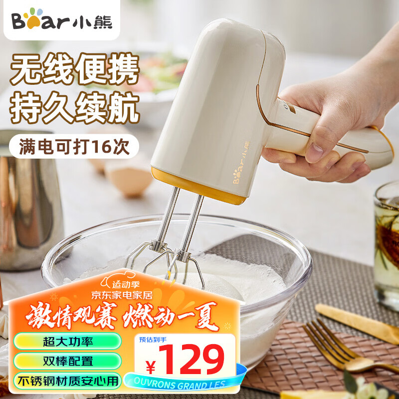 小熊(Bear)打蛋器电动家用充电式迷你打奶油机搅拌器烘焙奶盖打发器手持DDQ-D01J1价格:129.00元!