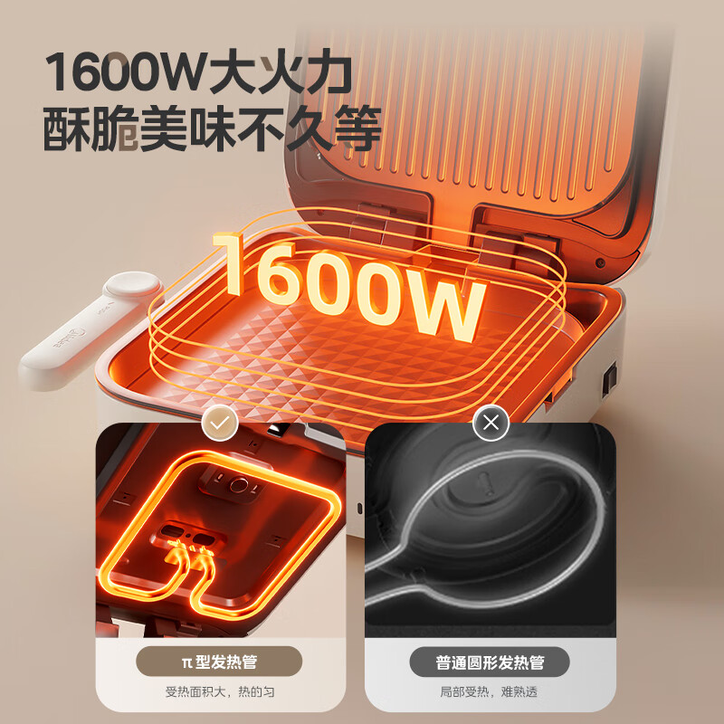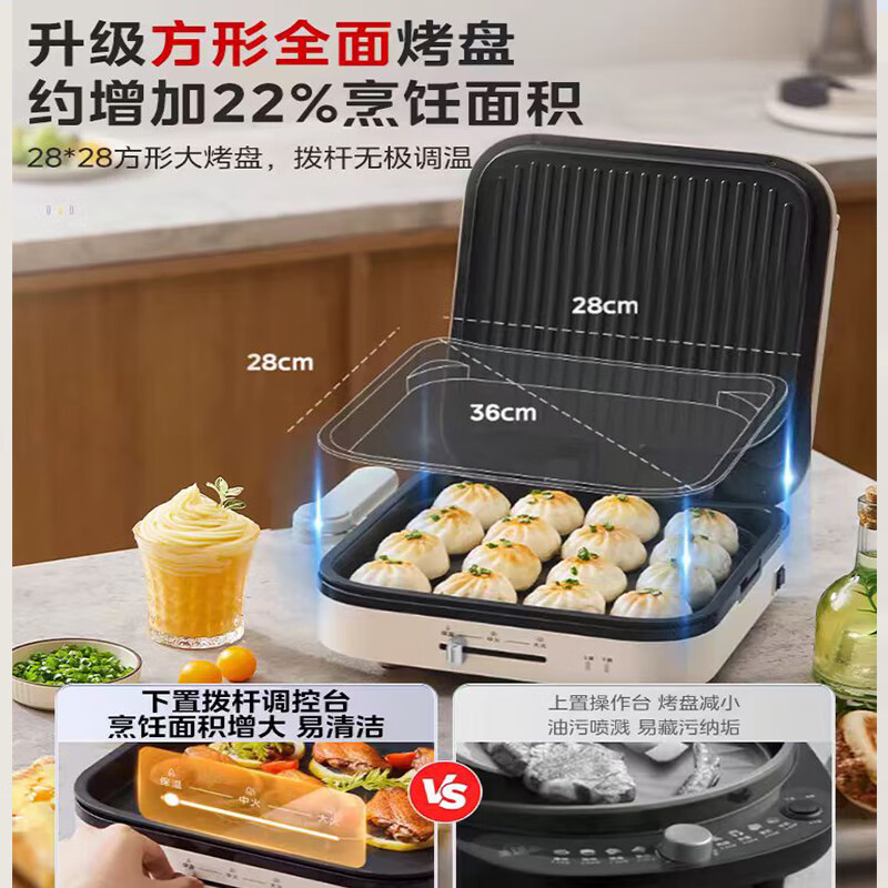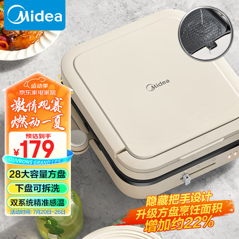 美的(Midea)电饼铛家用下盘可拆洗大火力三明治早餐机煎烤锅 方形双面加热加深大尺寸升级蒸汽烙饼烤肉锅28J51价格:179.00元!
