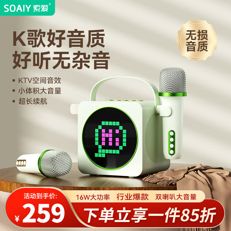索爱(soaiy)话筒音响一体自带声卡k歌麦克风家庭ktv音响套装无线蓝牙音箱唱歌神器一体式儿童卡拉OK SK15绿色价格:304.71元!