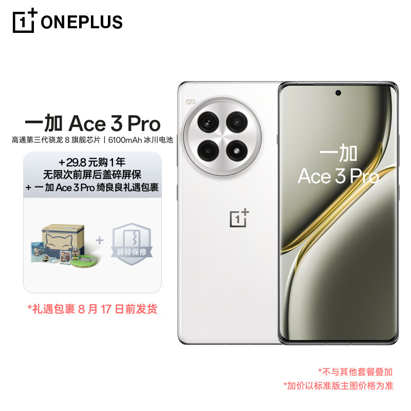 一加 Ace 3 Pro 16GB+512GB 超跑瓷典藏版 第三代骁龙 8 旗舰芯片 6100mAh 冰川电池 AI智能手机价格:4028.80元!