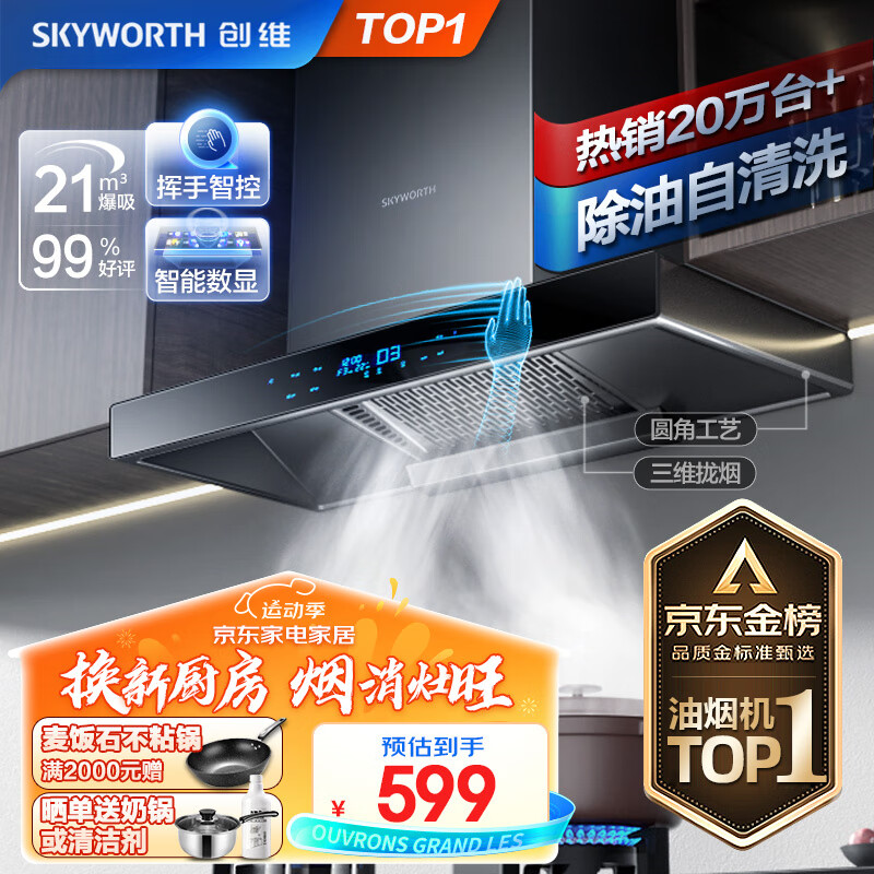 创维(Skyworth)油烟机 欧式顶吸式吸油烟机家用 T型爆炒大吸力抽油烟机 自清洗挥手体感触控Y1H价格:1099.00元!
