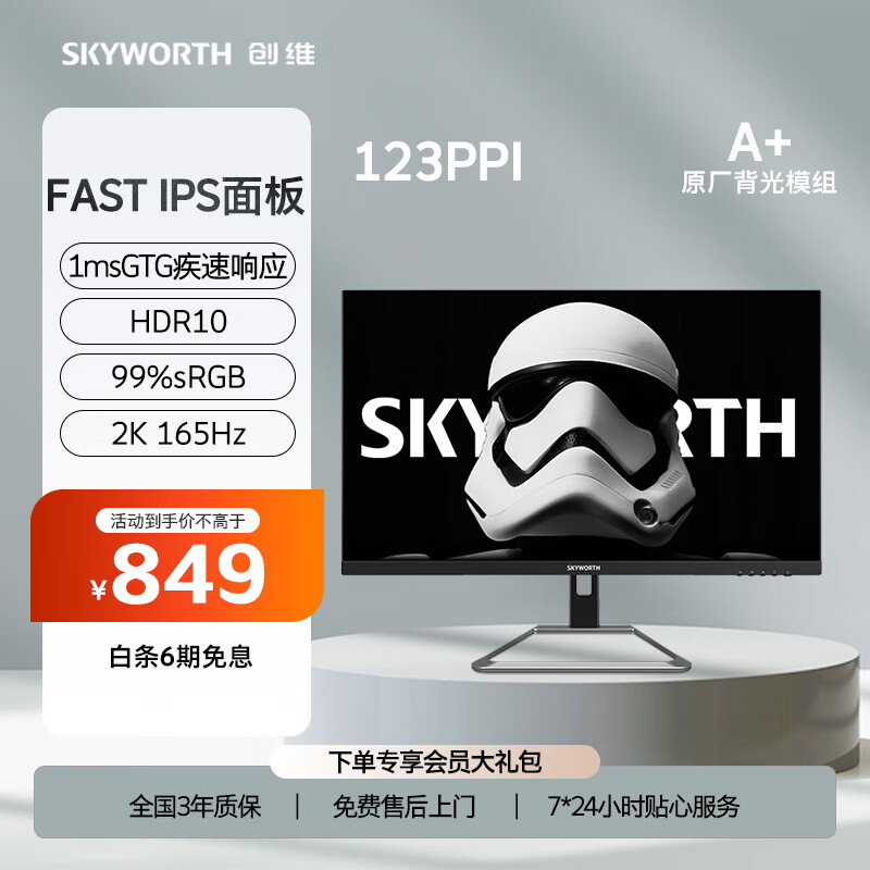 创维24英寸 2K QHD 电竞显示器 165Hz 1ms 快速液晶 Fast IPS 广色域 HDR10 电脑显示屏 F24G3Q价格:999.00元!