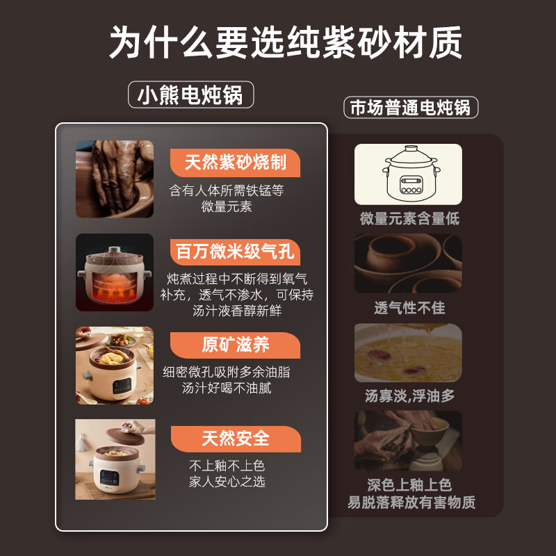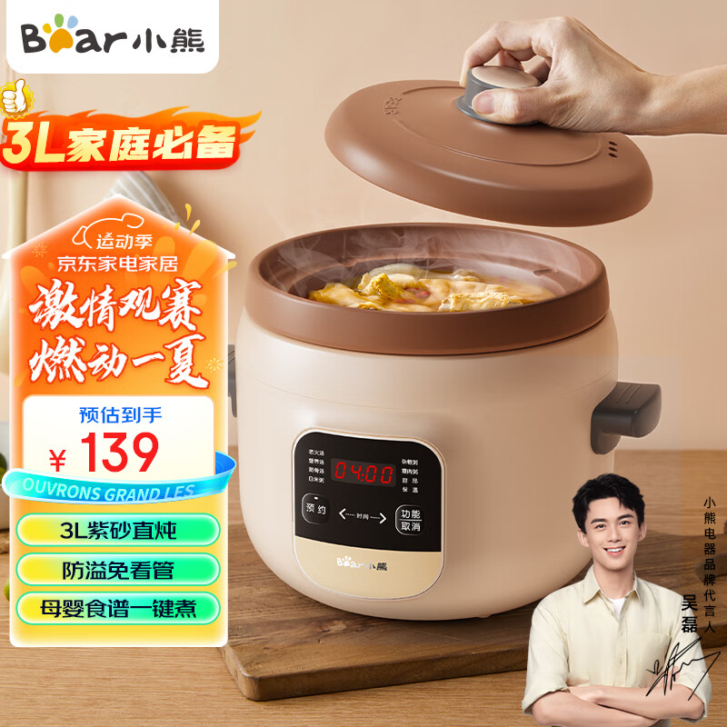 小熊(Bear)电炖锅 电砂锅 电炖盅 煲汤锅 炖汤锅 煮粥锅 紫砂锅 预约定时婴儿辅食燕窝3L电汤锅DDG-D30L3价格:137.00元!