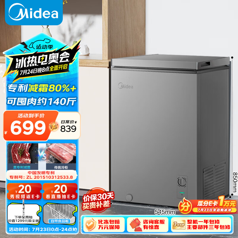 美的(Midea)100升低霜小冰柜家用冷藏冷冻两用一级能效母乳茶叶保鲜柜小型冷柜冰箱BD/BC-100KMF(E) 以旧换新价格:699.00元!