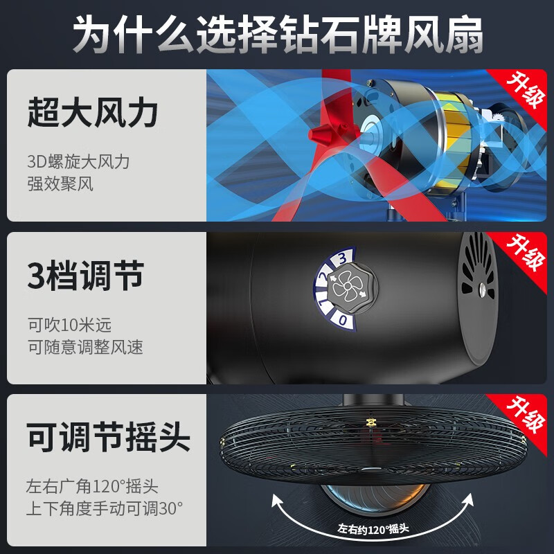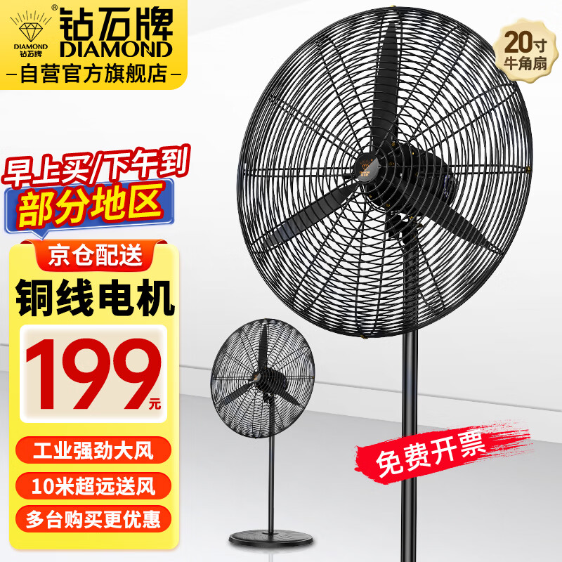 钻石牌(DIAMOND)工业风扇大风力电风扇牛角扇大功率风扇工厂车间商用立式落地大风扇工业壁扇吹除甲醛 FS-50 工业落地扇(铜线电机)价格:219.00元!