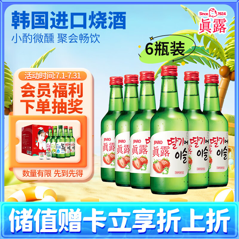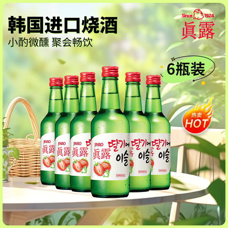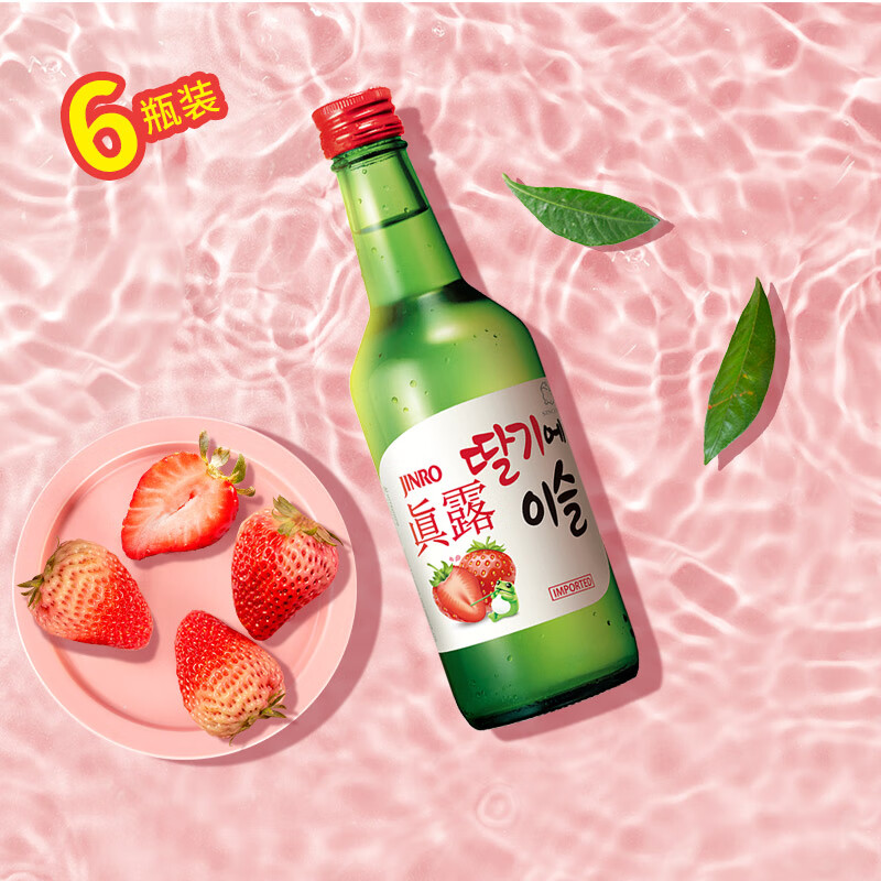 真露果味烧酒13°草莓味 360ml*6瓶装 微醺果味酒 家庭聚餐价格:66.00元!
