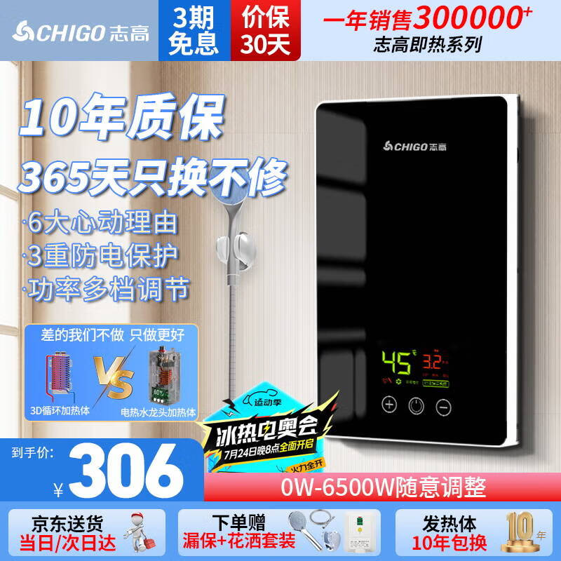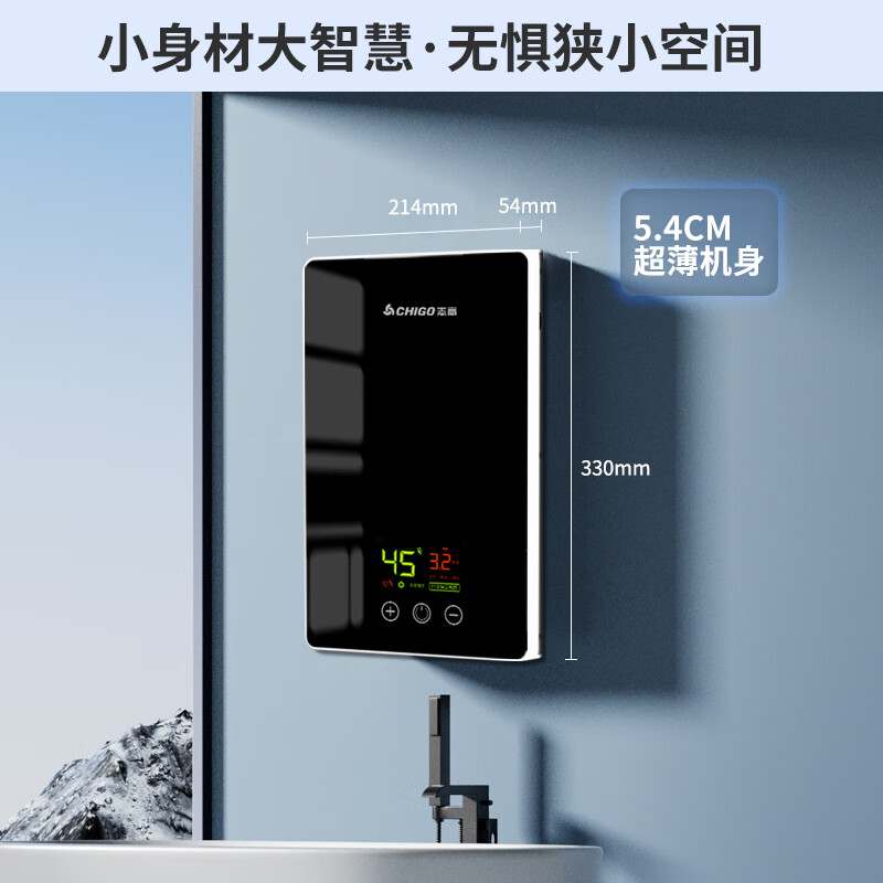 志高(CHIGO)即热式电热水器超薄小厨宝 6500W变频恒温智能省电出租房家用洗澡免储水水龙头黑色 KBR-B65价格:338.00元!