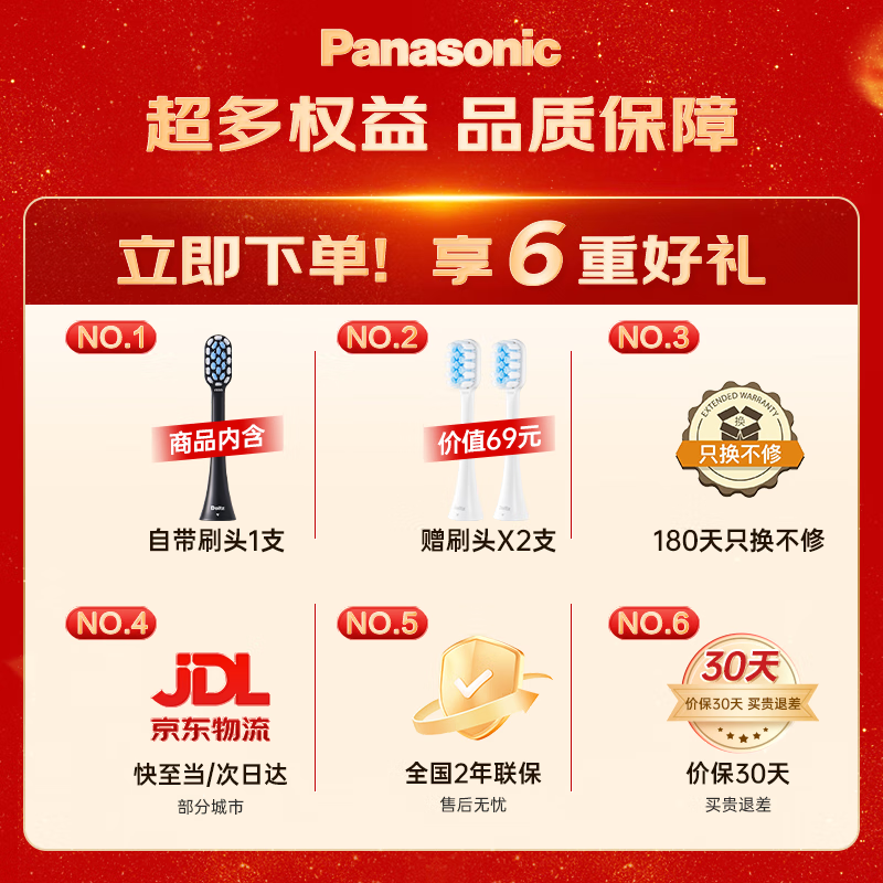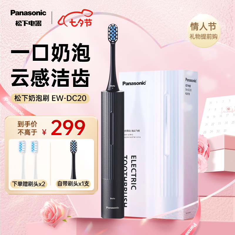 松下(Panasonic) 电动牙刷奶泡刷去渍护龈双效滑屏解锁控制电量长久续航七夕情人节情侣礼物送对象DC20黑色价格:339.00元!