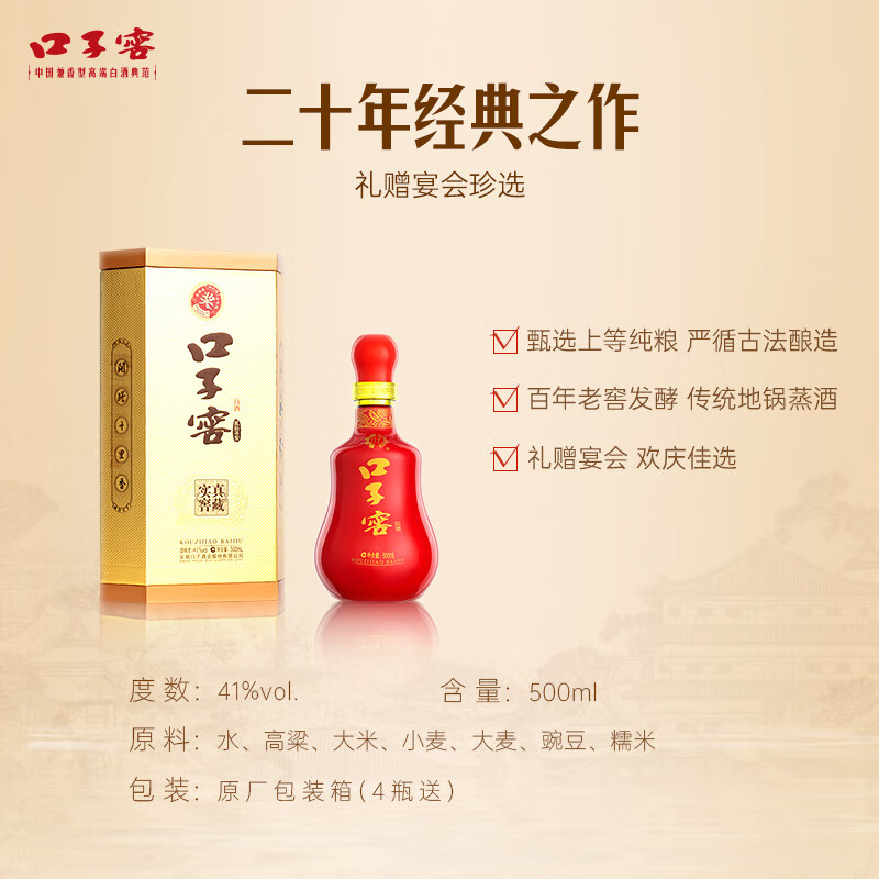 口子窖 二十年型 兼香型白酒 41度 500ml 口子酒 纯粮价格:503.00元!