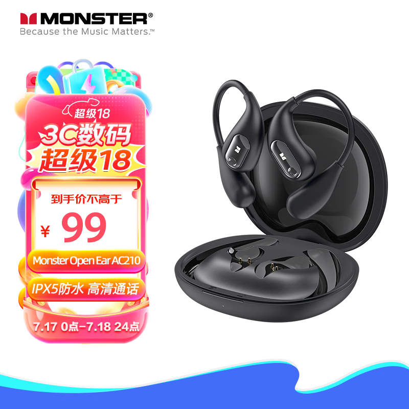 魔声(MONSTER)挂耳式蓝牙耳机不入耳无线骨传导概念运动跑步长续航通话降噪游戏音乐耳机 AC210 黑色价格:116.50元!