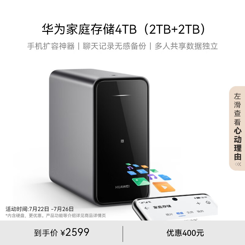 华为家庭存储4TB Pura 70手机一碰扩容 双盘位nas网络存储器相册备份家用硬盘网盘私有云服务器价格:2599.00元!