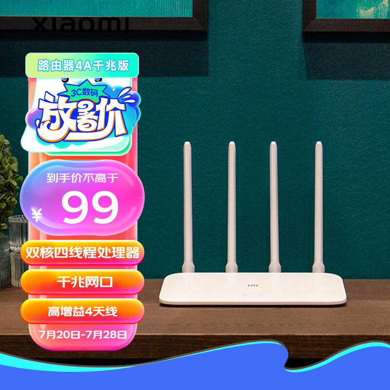 小米(MI)路由器4A千兆版 双核CPU 双千兆 1200M双频无线速率 5G家用智能路由器 四天线穿墙 双频合一价格:99.00元!