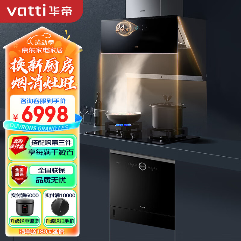 华帝(VATTI)抽油烟机旗舰机王侧吸式变频油烟机燃气灶具洗碗机家用厨房三件套i11193+72B+iE7(天然气)价格:8399.00元!