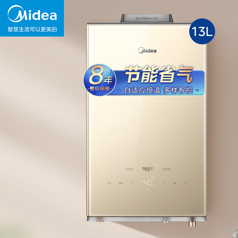 美的(Midea)13升水气双调智能家电 恒温式燃气热水器 摩卡金 12T 电辅防冻JSQ25-RX1*价格:2999.00元!