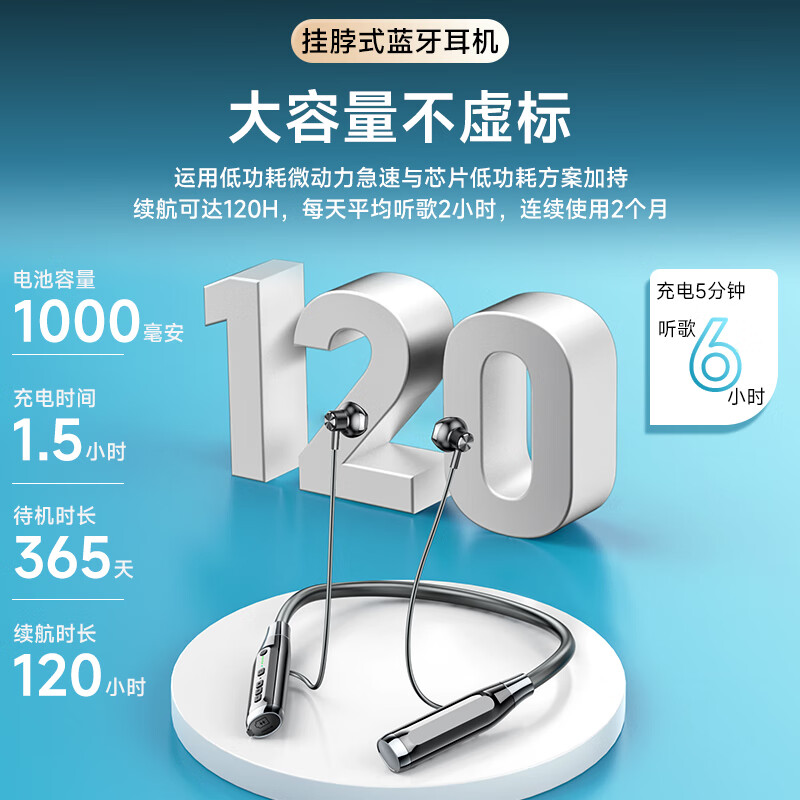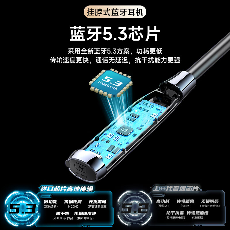 Sorthol蓝牙耳机挂脖式超长续航无线运动降噪耳机半入耳式适用华为苹果OPPO大电量外卖跑步颈挂式高清通话 【大容量可插卡】高音质 黑价格:159.00元!