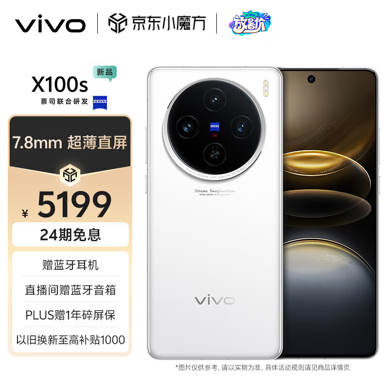 vivo X100s 16GB+1TB 白月光 蓝晶×天玑9300+ 蔡司超级长焦 7.8mm超薄直屏 5G 拍照 手机价格:5199.00元!