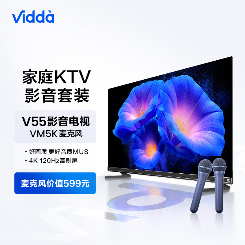 Vidda海信 55V5K+VM5K-T麦克风 家庭KTV娱乐体验套装 杜比音画 天籁K歌 专属电视K歌定制价格:2579.00元!