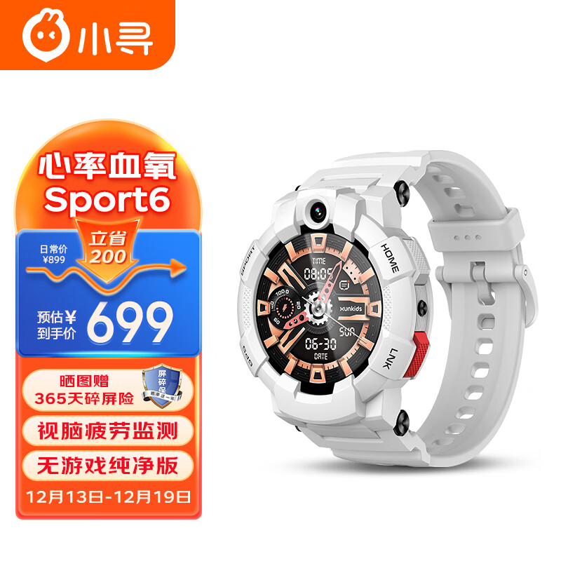 小寻 初中生电话手表 青少年手表 学生运动手表 智能手表心率检测定位视频通话无游戏 Sport6旗舰版限定白价格:729.00元!