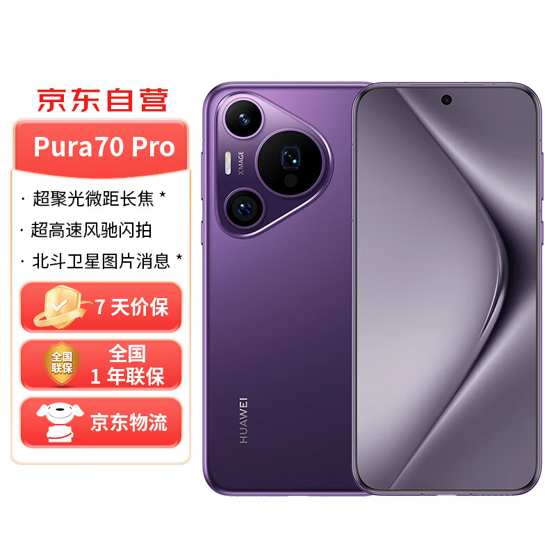 HUAWEIHUAWEI Pura 70 Pro 罗兰紫 12GB+512GB 超高速风驰闪拍 华为P70智能手机价格:11999.00元!
