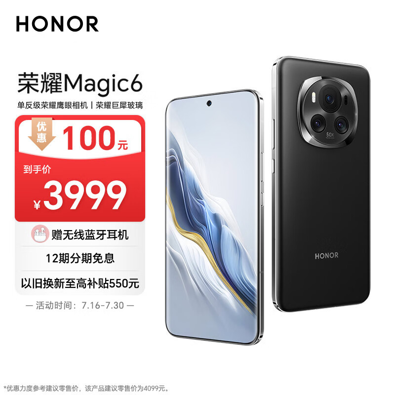 荣耀Magic6 单反级荣耀鹰眼相机 荣耀巨犀玻璃 第二代青海湖电池 12GB+256GB 绒黑色 5G AI手机价格:4099.00元!