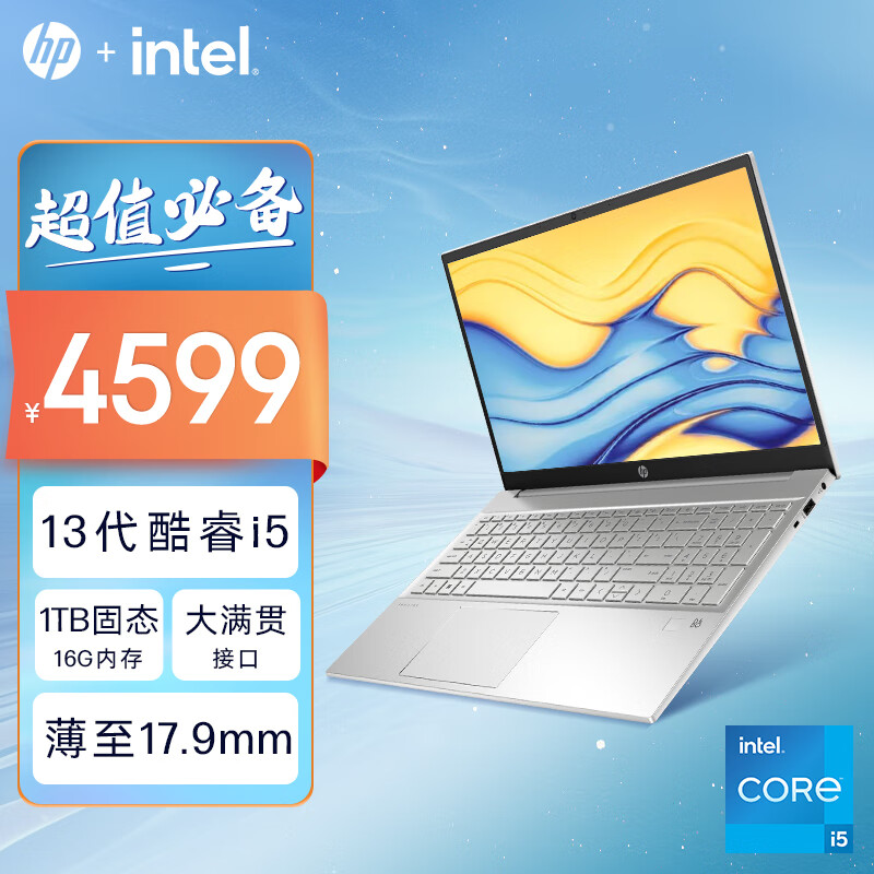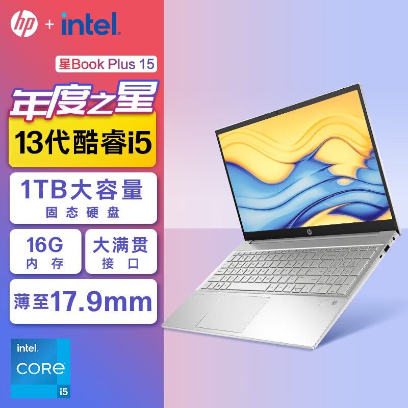 惠普HP 星Book Plus 15.6英寸大屏轻薄笔记本电脑(13代酷睿i5-1340P 16G 1TB 高色域护眼屏 背光键盘 指纹识别)银价格:4599.00元!