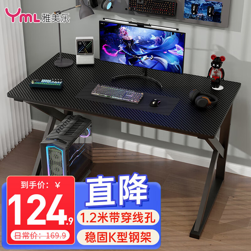 雅美乐电竞电脑桌台式 加粗加厚办公家用桌简易书桌学习游戏写字桌价格:169.90元!
