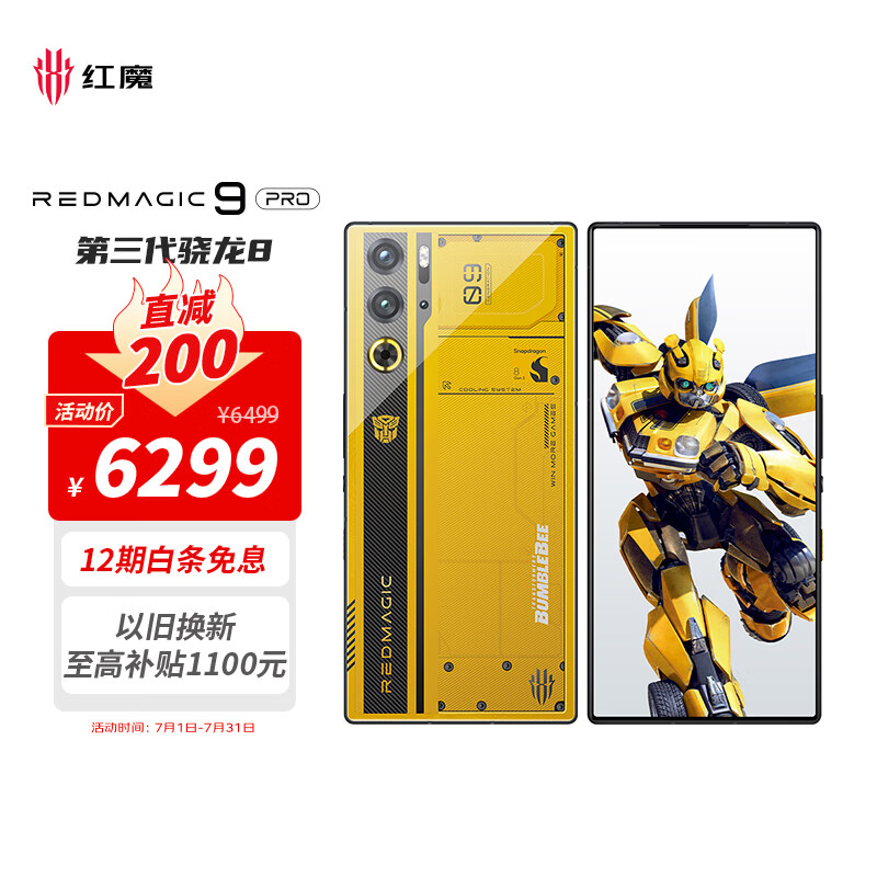 努比亚(nubia)红魔9Pro+ 变形金刚大黄蜂典藏版?16+512屏下游戏手机 骁龙8Gen3 165W快充 5G电竞手机价格:6299.00元!