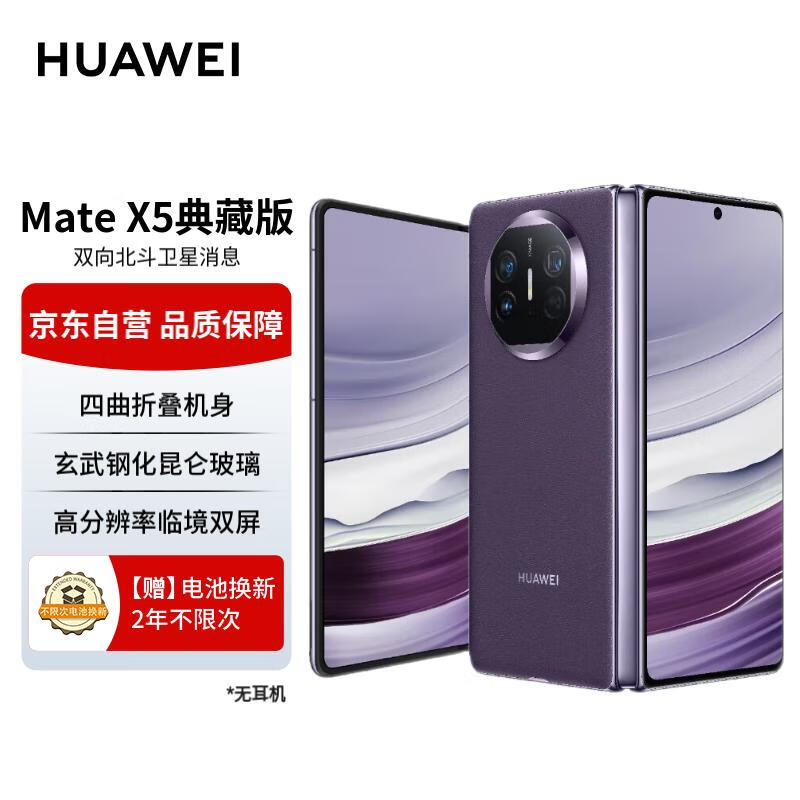 华为(HUAWEI) Mate X5 典藏版 折叠屏手机 16GB+512GB 幻影紫价格:14899.00元!