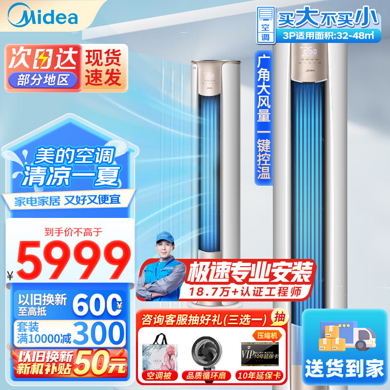 美的(Midea)空调立式柜机新一级能效 智能变频冷暖圆柱客厅立柜式空调 升级大风口锐静3匹 KFR-72LW/N8VHC1Ⅱ价格:5999.00元!