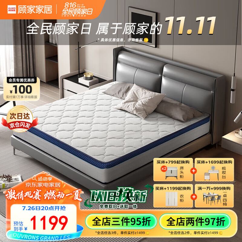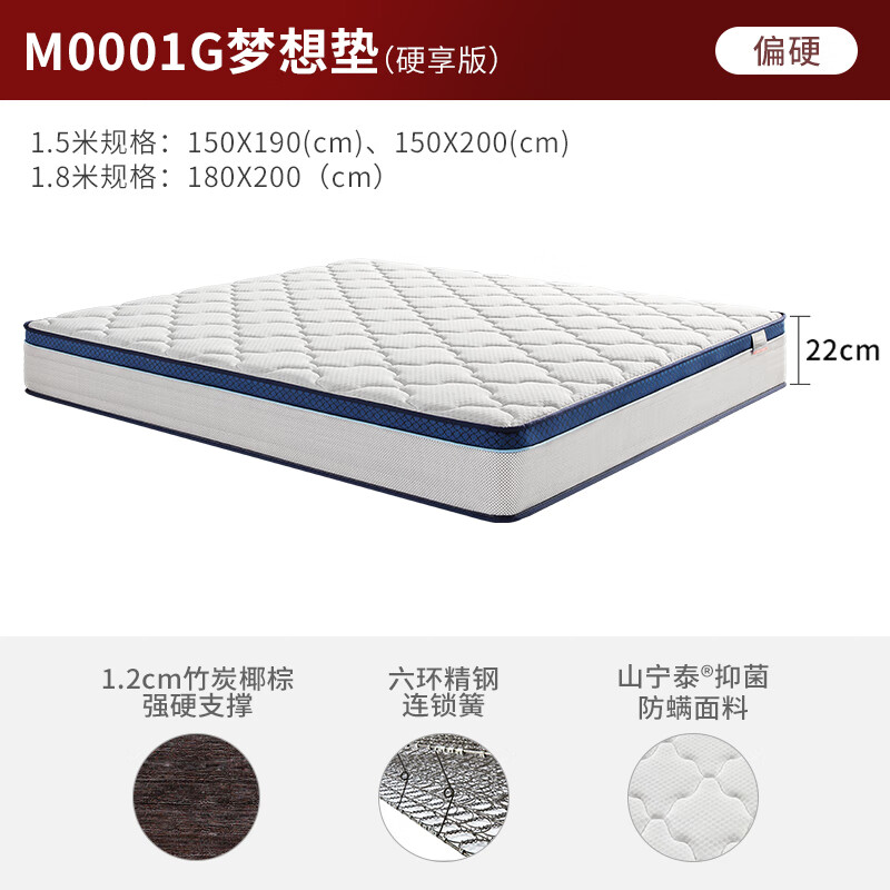 顾家家居(KUKA)床垫弹簧竹炭椰棕偏硬床垫0001G梦想垫青少年/老人版床垫1.8X2米价格:1199.00元!