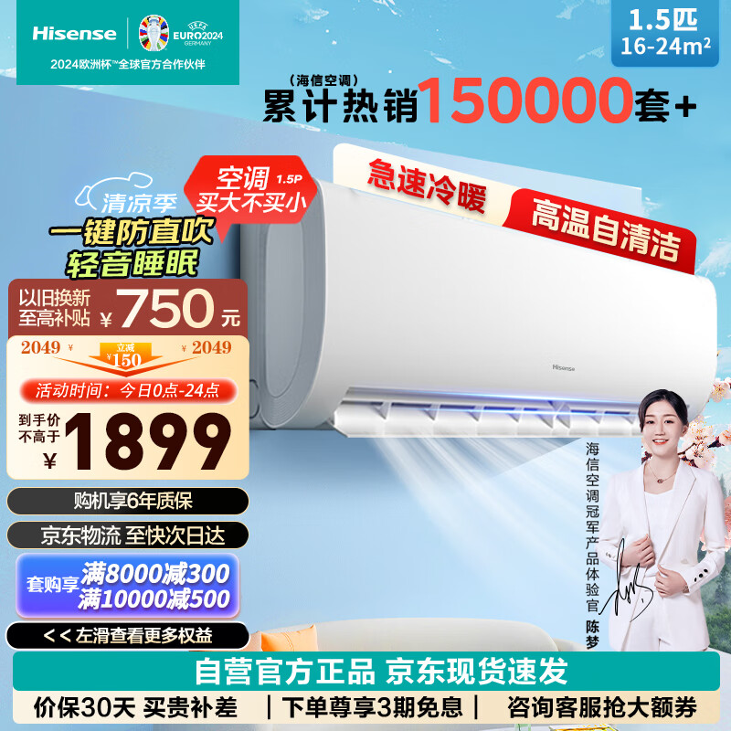 海信(Hisense)1.5匹速冷热新三级能效急速冷暖APP智能变频防直吹壁挂式卧室空调挂机KFR-35GW/E370-X3以旧换新价格:1899.00元!
