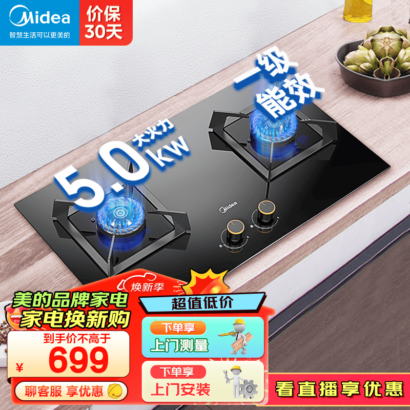 美的(Midea)搪瓷盛液盘灶具 5.0kw大火力家用燃气灶双灶天然气灶Q310-M猛火灶煤气灶双灶台式嵌入式炉灶双眼灶 可调节开孔/一级能效 (天然气)价格:699.00元!