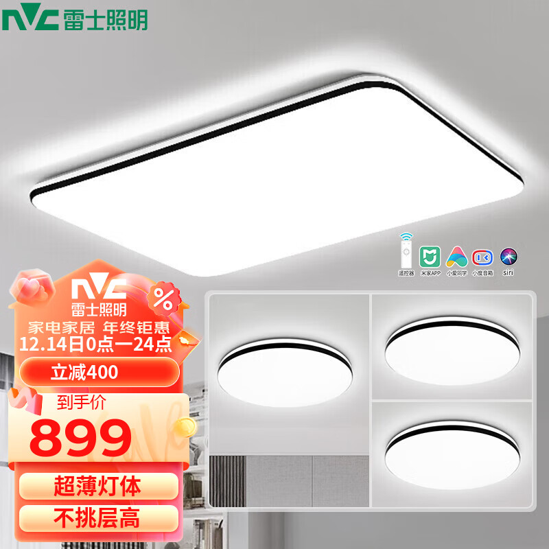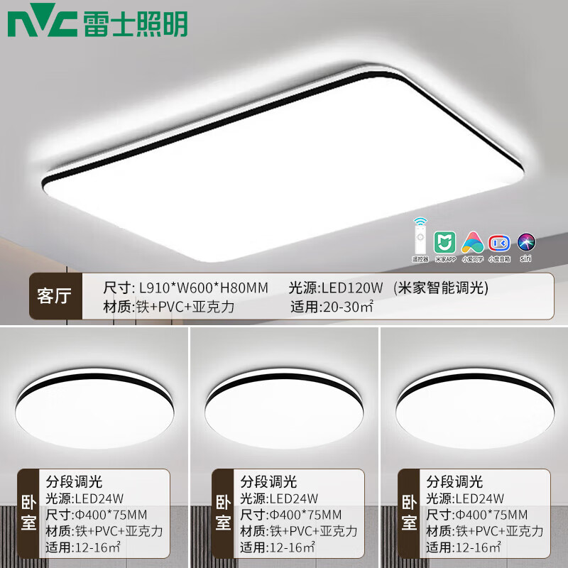 雷士照明(NVC)吸顶灯客厅大灯卧室餐厅灯具全屋套餐智能三室一厅C主灯智能价格:1199.00元!