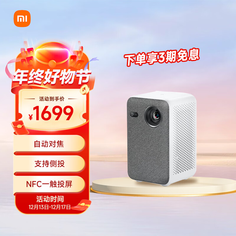 小米投影仪mini 投影仪家用 家庭影院 (自动对焦 支持侧投 NFC一触投屏 内置电池续航2h以上)价格:1699.00元!