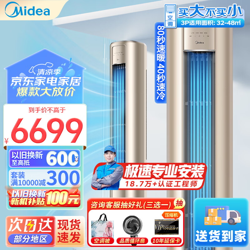美的(Midea)空调 3匹 风尊 新一级能效 变频冷暖 客厅空调立式 空调柜机 京东小家智能家电 KFR-72LW/N8MZB1价格:6699.00元!