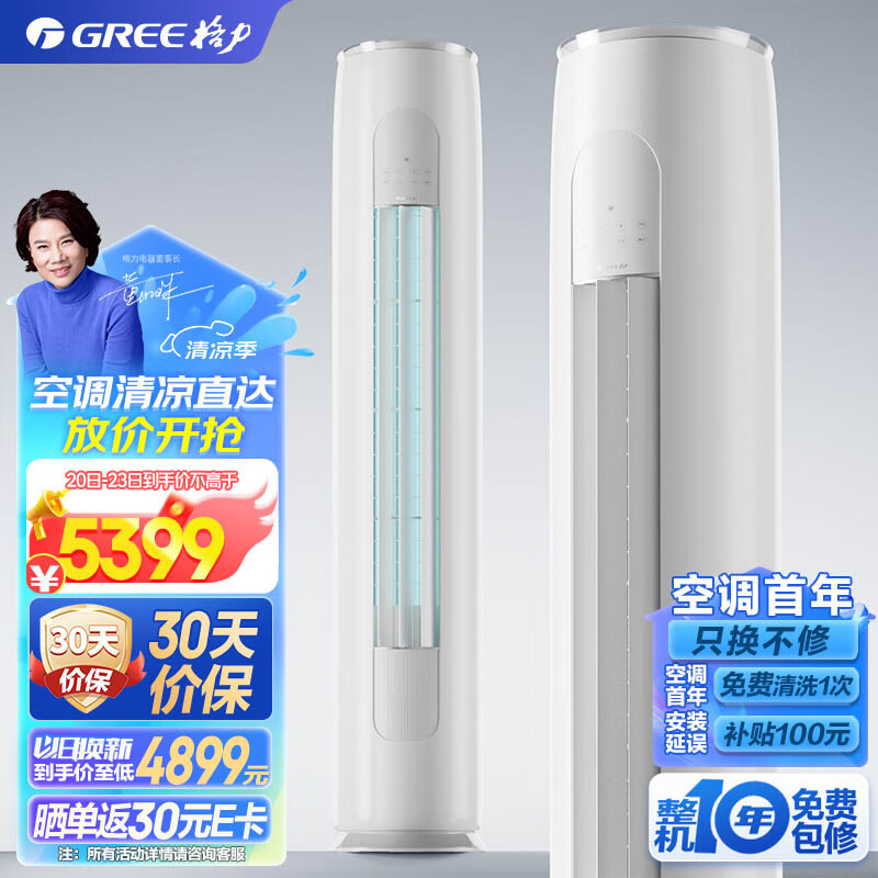 格力(GREE)2匹 天仪 新一级能效 变频 自清洁 客厅圆柱空调立式柜机KFR-50LW/(50504)FNhAa-B1价格:5399.00元!