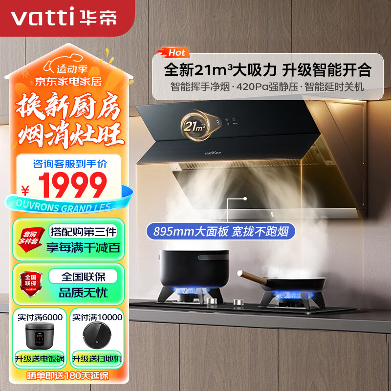 华帝(VATTI)官方抽油烟机家用排油烟机燃气灶烟灶套装21风量侧吸吸油烟机灶具套装i11127S天然气价格:1999.00元!