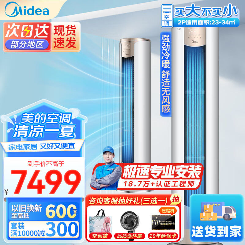 美的(Midea)新一级 纤白 大2匹 变频冷暖无风感 智能家电 家用客厅立式空调柜机 KFR-51LW/N8MWD1价格:8599.00元!