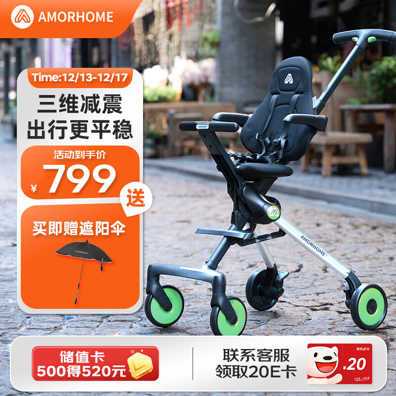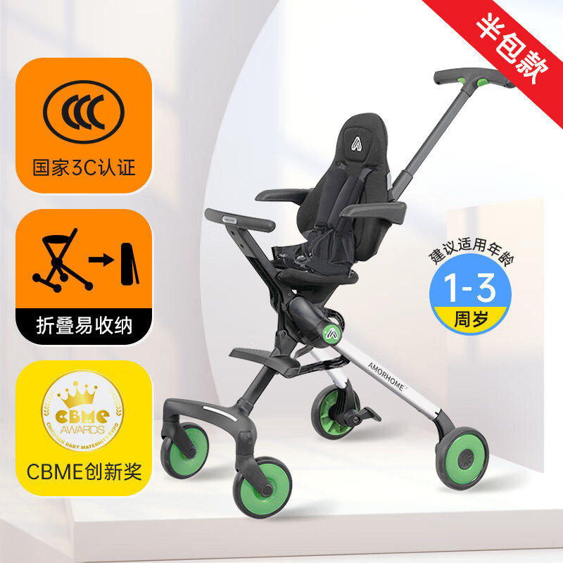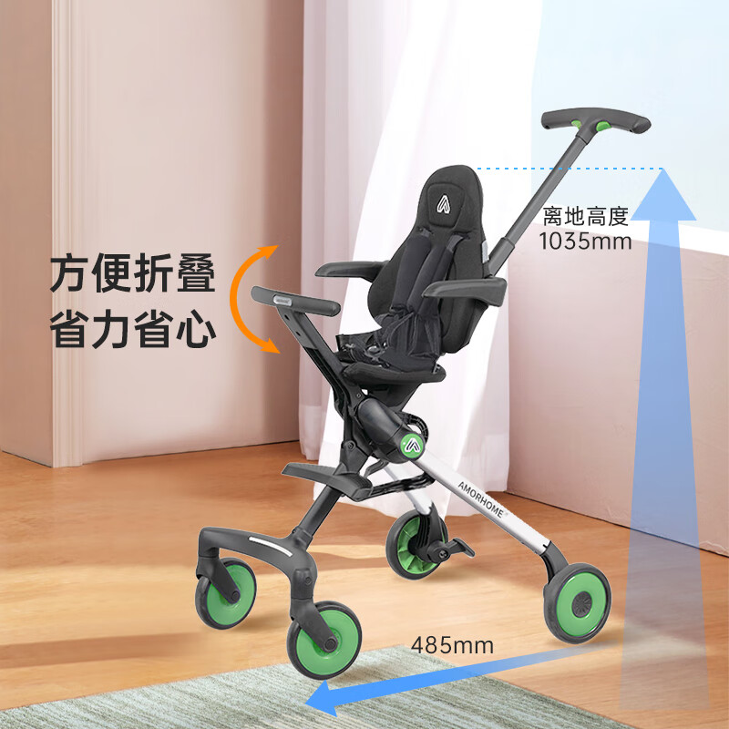 AMORHOME遛娃神器婴儿推车可坐可躺轻便折叠宝宝溜娃折叠小易收绿色价格:999.00元!
