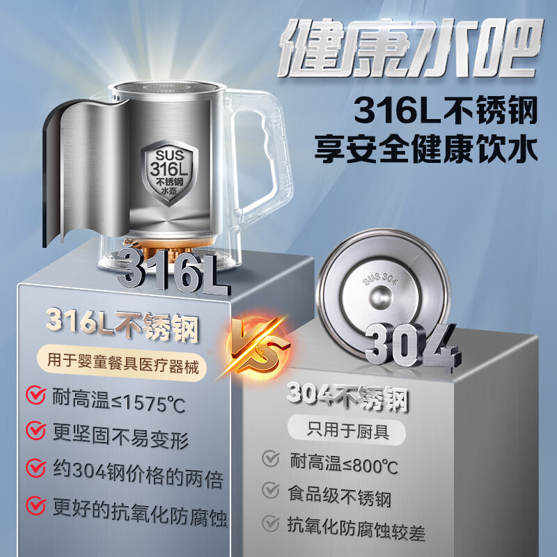 4、不错的茶吧机,看中的316l母婴级的不锈钢材质,家里有孩子也可以用的很放心,其他同品牌的基本只有304不锈钢,操作也很简单便捷。