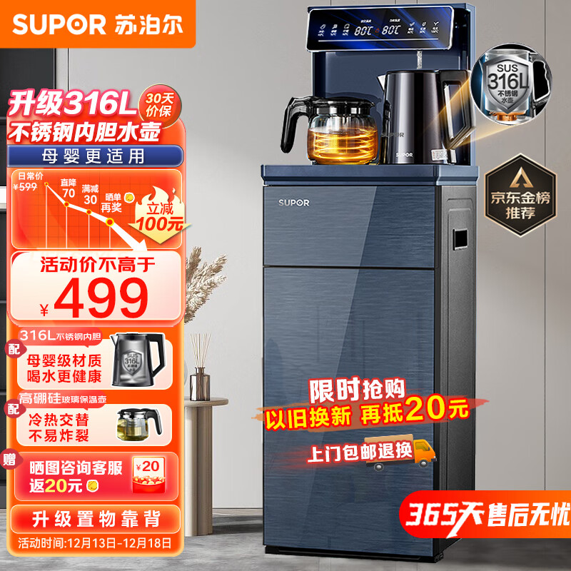 苏泊尔(SUPOR)茶吧机 家用高端饮水机 遥控智能下置水桶 全自动自主控温立式316L水壶泡茶机 CBJ12【温热款】价格:549.00元!
