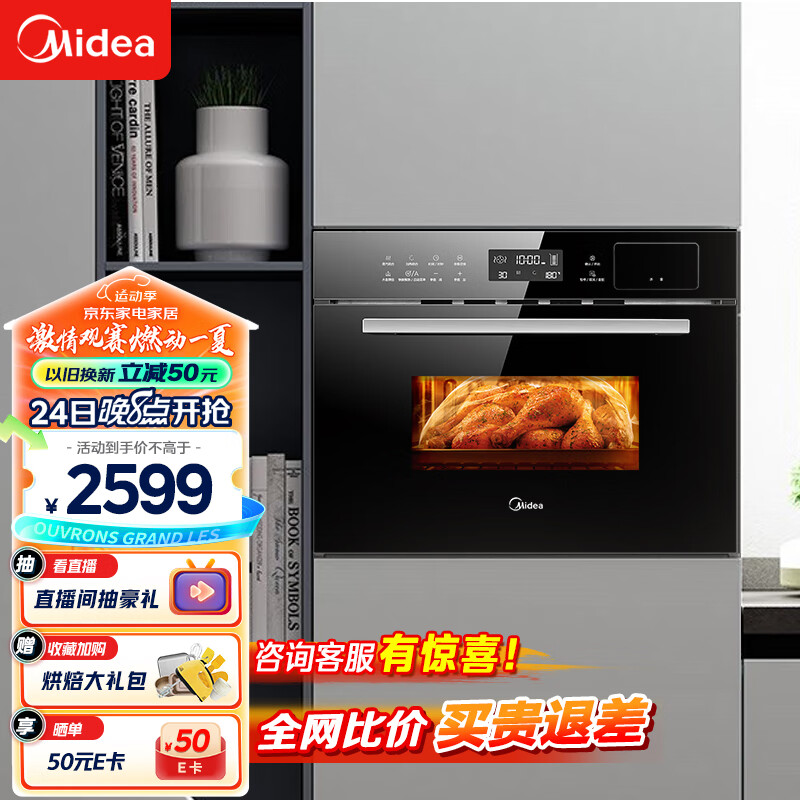 美的(Midea)伯爵 蒸汽烤箱 嵌入式电蒸箱电烤箱 家用大容量蒸烤一体机TQN34FBJ-SA价格:2599.00元!