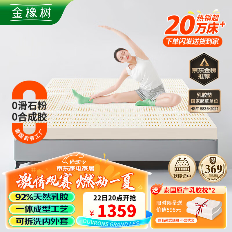 金橡树泰国乳胶原液进口床垫榻榻米加厚双人床垫 1.5*2米 泰舒 含内外套价格:1699.00元!