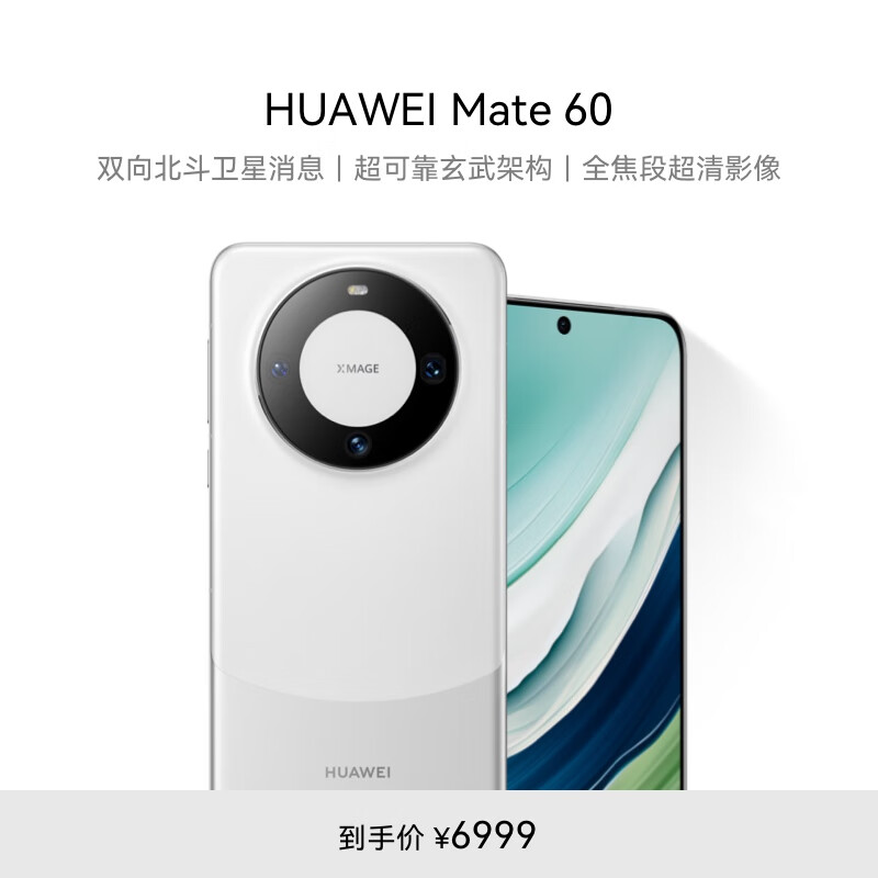 华为(HUAWEI)旗舰手机 Mate 60 12GB+1TB 白沙银价格:6999.00元!