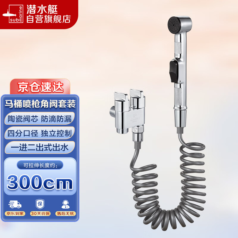 潜水艇(Submarine)F403马桶喷枪妇洗器角阀套餐双把双控主体黄铜陶瓷阀芯4分进水价格:158.00元!