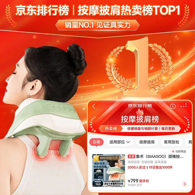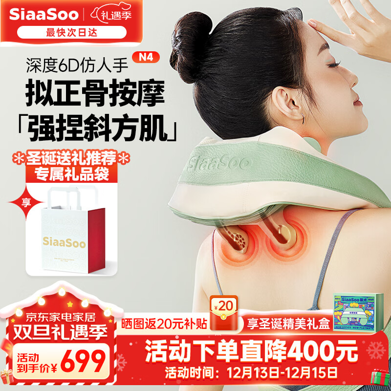 象术(SIAASOO)颈椎按摩器颈部按摩仪颈椎按摩仪肩颈按摩器颈部披肩斜方肌腰部按摩枕 生日父母男女朋友圣诞送礼 N4按摩披肩【浅岛绿】价格:1099.00元!