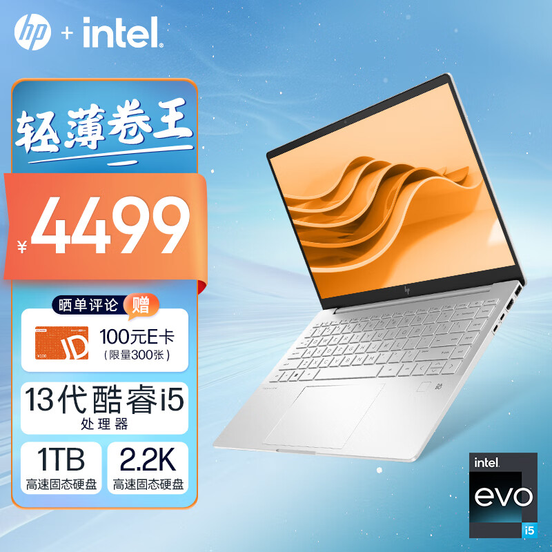 1、看了不少轻薄本,还是觉得惠普星系列比较合适,搭载英特尔13代酷睿cpu,16G内存,1T硬盘,还有EVO认证,妥妥的办公利器。做工很好,系统很流畅,关键颜值很高,点赞